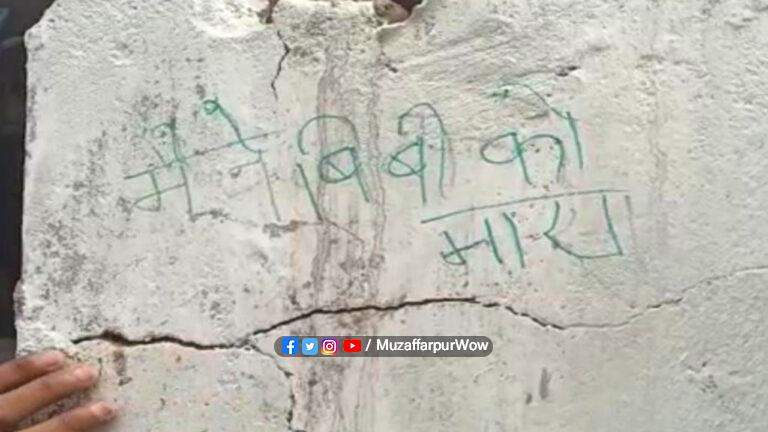 सीतामढ़ी में एक पति ने अपनी पत्नी की गला रेतकर हत्या कर दी। इसके बाद उसने घर की ही दीवार पर बच्चों के हरे स्कैच पेन से लिखा कि- मैंने अपनी बीवी को मारा है। दीवार पर लिखने के बाद उसने अपने ससुर को फोन किया और बोला- कि अपनी बेटी की लाश उठा लो। जैसे ही ससुर बेटी के गर पहुंचे तो उनके होश उड़ गए। बेटी की लाश के आसपास खून ही खून पड़ा था।