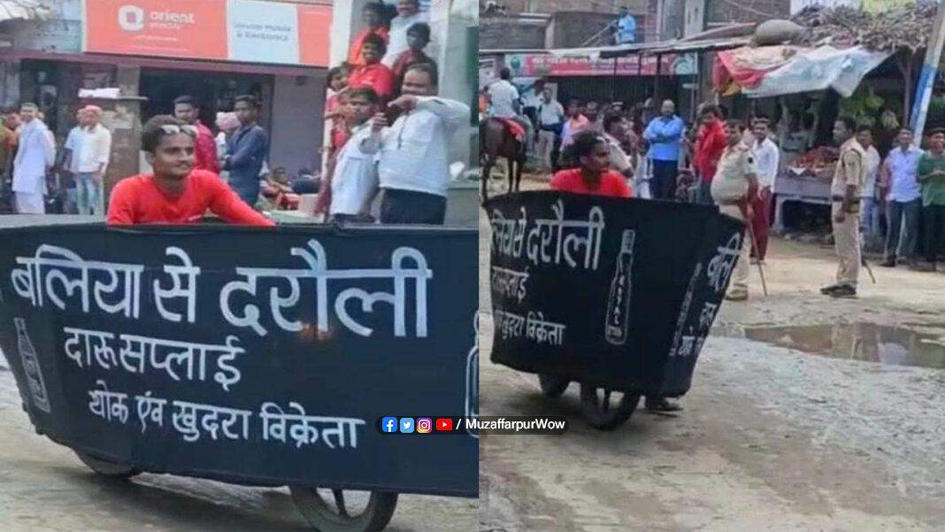 वायरल वीडियो में बाइक पर चारों तरफ से एक बोर्ड लगा हुआ है, जिस पर लिखा है- ‘बलिया से दरौली दारू सप्लाइ थोक एवं खुदरा विक्रेता’. बता दें कि बलिया उत्तर प्रदेश में पड़ता है और दरौली बिहार के सीवान जिले में है. उत्तर प्रदेश में शराब धड़ल्ले से बिकती है. बिहार से सटा होने के कारण वहां से अक्सर शराब की आ रही खेप को पकड़ा भी गया है. अक्सर सीवान और गोपालगंज में इस तरह की कार्रवाई पुलिस करती है. अब इस बीच युवक का यह वीडियो चर्चा का विषय बना हुआ है. यह वीडियो किस दिन का है इसके बारे में कोई पुष्टि नहीं की गई है.